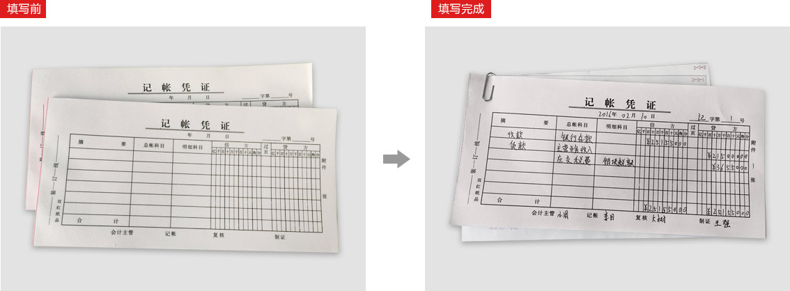 第二步:会计人员根据审核无误的原始凭证填写记账凭证。填写完记账凭证后把原始凭证黏贴到记账凭证后面