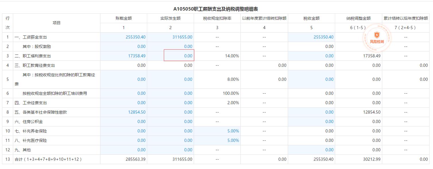 (2)第2列“实际发生额”:分析填报纳税人“应付职工薪酬”会计科目下的职工福利费实际发生额。