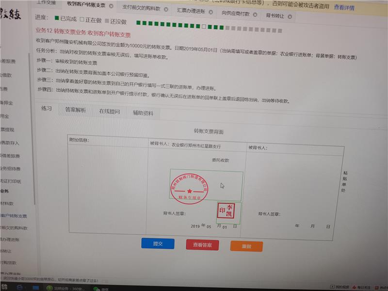 回答这是公司收到转账支票办理进账的业务,被背书人写自己的收款行说明是背书给自己的开户行,然后银行代收款项的。