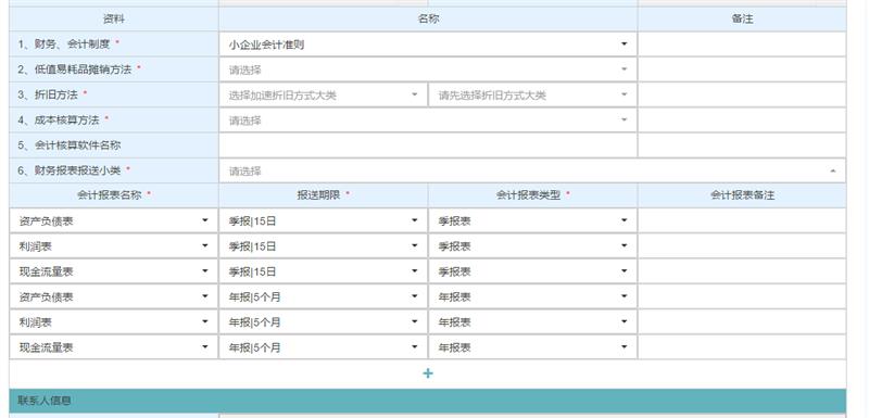 老师,新注册的公司做那个财务会计制度信息登记,带*号的应该选什么
