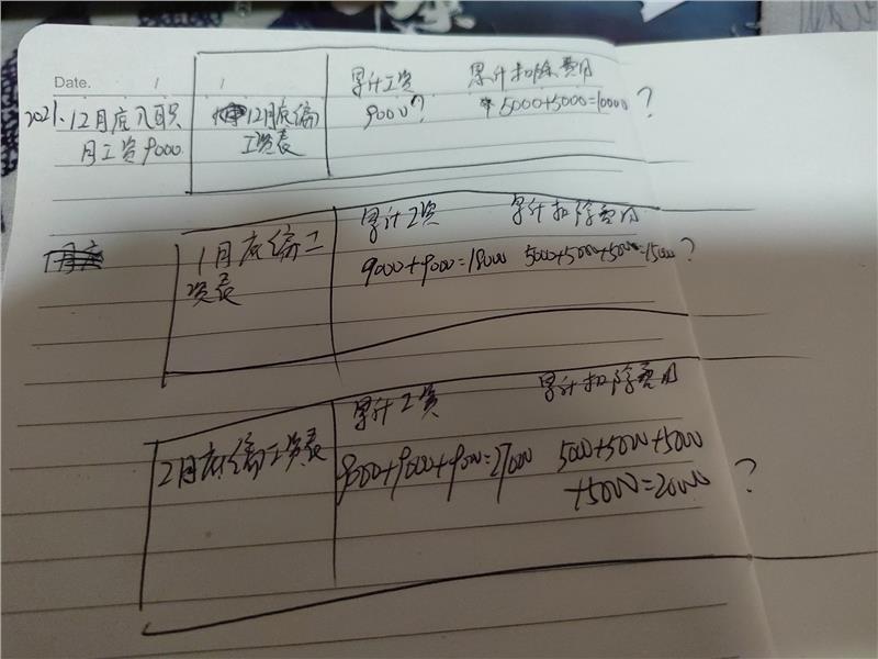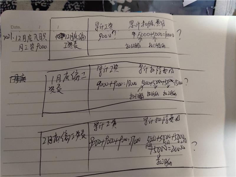 追问老师,那我给的这张图片编的工资表上的累计数对不对?老师你对着我画的表问答我嘛,我辛辛苦苦画了,你总要看看我编的对不对