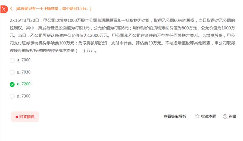不对的 这个是非同控是付出对价的公允价值 1000*6+1000=7000 为发行股票的手续费是冲减资本公积的 支付的审计费、评估费是计入管理费用的 所以投资成本是7000