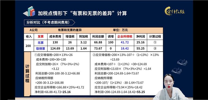左边是没有发票的情况下,成本是130,需要把没有发票的部分100调增 ,也可以理解为,在税法上利润只承认30的成本,100没有发票的不承认。 右边是取得发票的部分 所以在计算税法上面的利润是需要减掉有发票的成本的呢