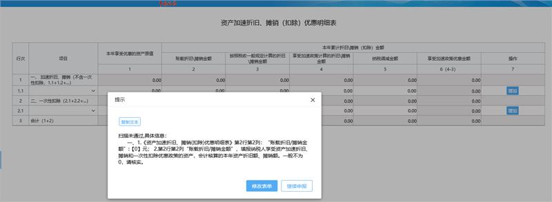 固定资产可以一次性的扣除,你们如果存在固定资产符合条件可以填写这个明细表,如果没有的话直接忽略这个提示