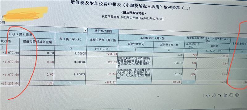 回答附加税的计税依据是实交的增值税税额,上个月这部分附加税缴纳过的话,本月就是负数可以留底或者申请退税的,不过申报表上有负数一般系统比对不通过,需要联系一下专管员的。
