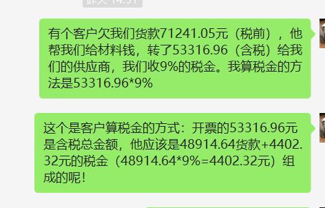 按照你的客户的算法的那,53316.96是含税,你要做价税分离的, 价款=53316.96/(1+9%)=48914.64 增值税税=4402.3176 是这样算的那。