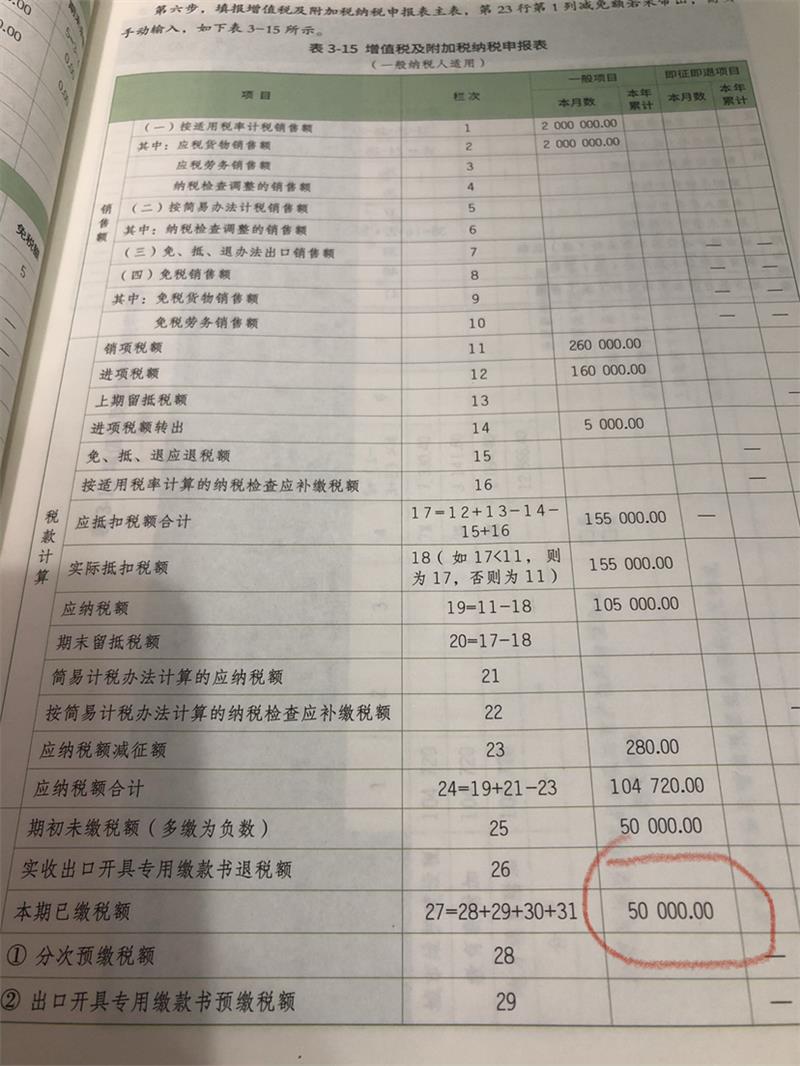 这个是本期缴纳缴纳上期的金额,是冲减25行期初未交的,不影响本期的申报数据,只是反映一下这个所属期内的申报情况,比如6月申报5月的税款时,这里反映的就是5月申报4月的情况。