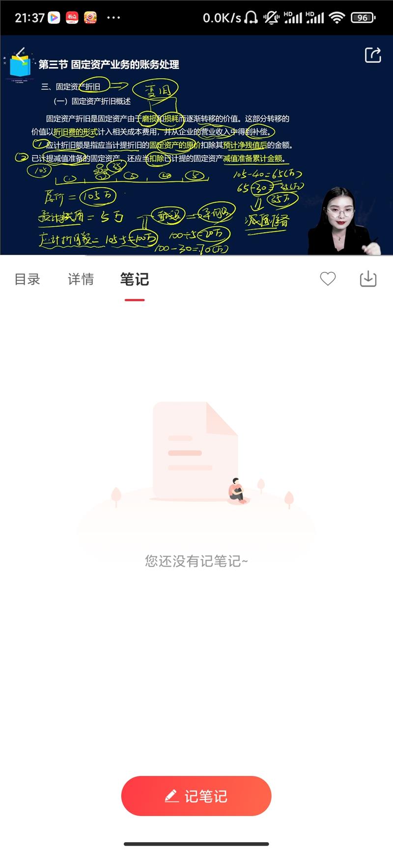 追问这是夏木老师临场举的例子:105万的小汽车,预计残值5万,5年折旧期,已计提2年折旧共40万,第2年末出了车祸,车辆减值了30万,此时的账面价值是65万-30万,还余35万。视频中老师的意思是: