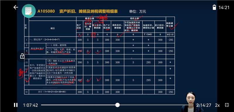 明年需要填写的,税收折旧金额是填写0的,当年一次性扣除调减之后,要把以后年度的折旧费用调增的。