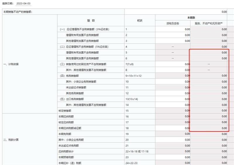你们不是服务 不动产行业的这里不填写的,填写前面的货物劳务销售额。
