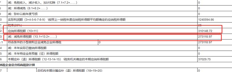 应纳所得税额是优惠前税额,就是应纳税所得额1240594.86*0.25=优惠前税额310,148.715 减去符合小微企业的优惠条件后的优惠税额 100万之内的是2.5%,100万至300万之间的是5%的 100*0.025+240594.86*0.05=37029.75 310148.72-37029.75=减免掉的税额273118.97。