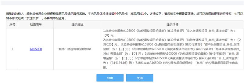 30行的其他里是有金额的, 你可以看下是什么原因填写的,如果无误的话可以点击关闭 继续申报的。