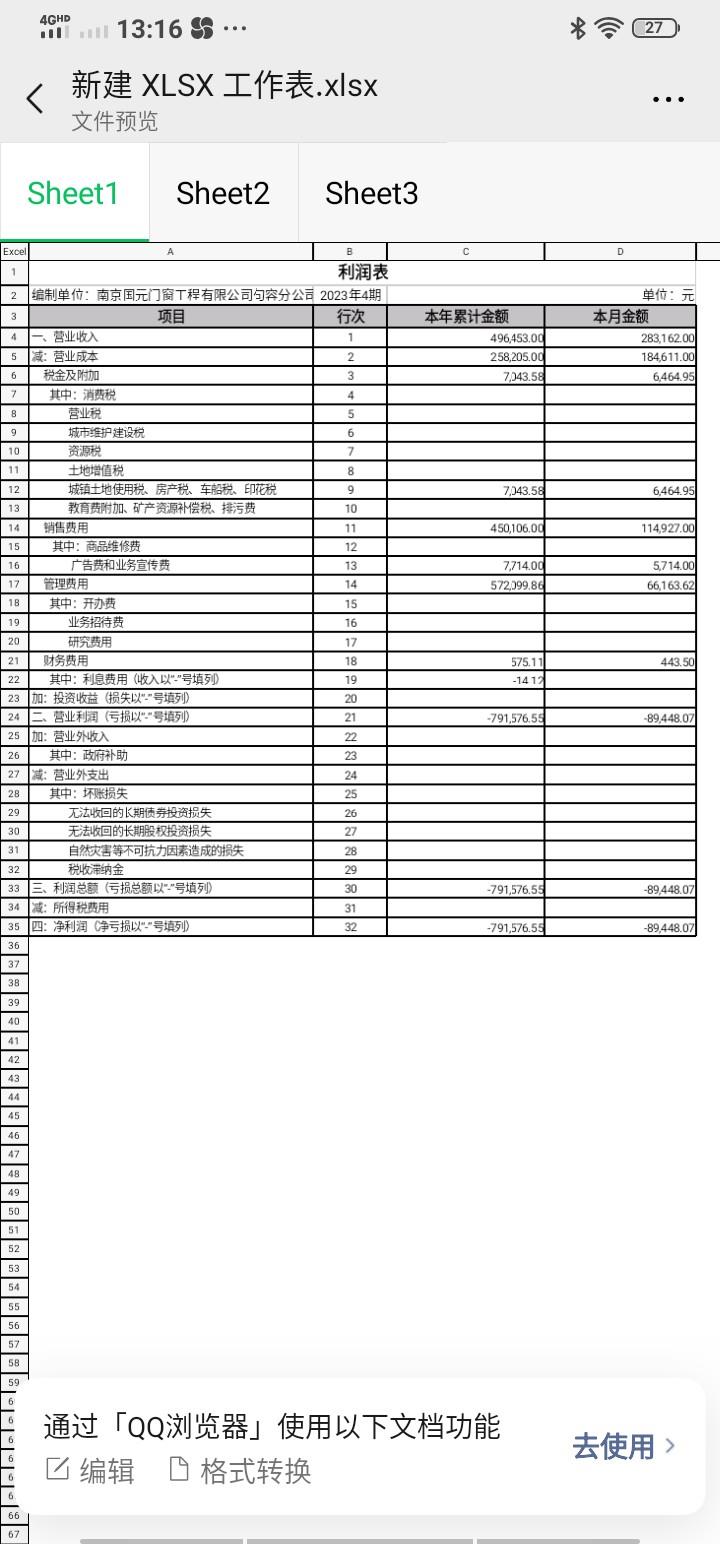 回答 损益表就是利润表的,这个看着是亏损的。