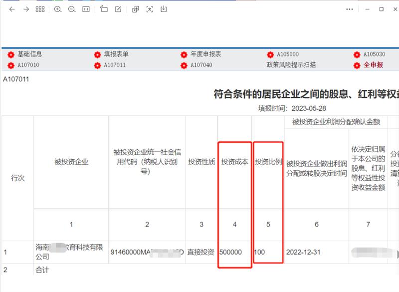 投资成本就填50万的,比例填写你们占有被投资企业的股份比例。