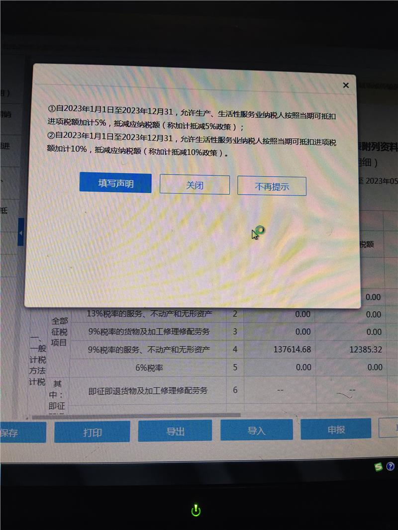 你们符合上面政策要求的加计抵减条件吗?符合的话点击填写说明,不符合的话点击关闭的,下面的你们是符合什么业务享受减免呢?