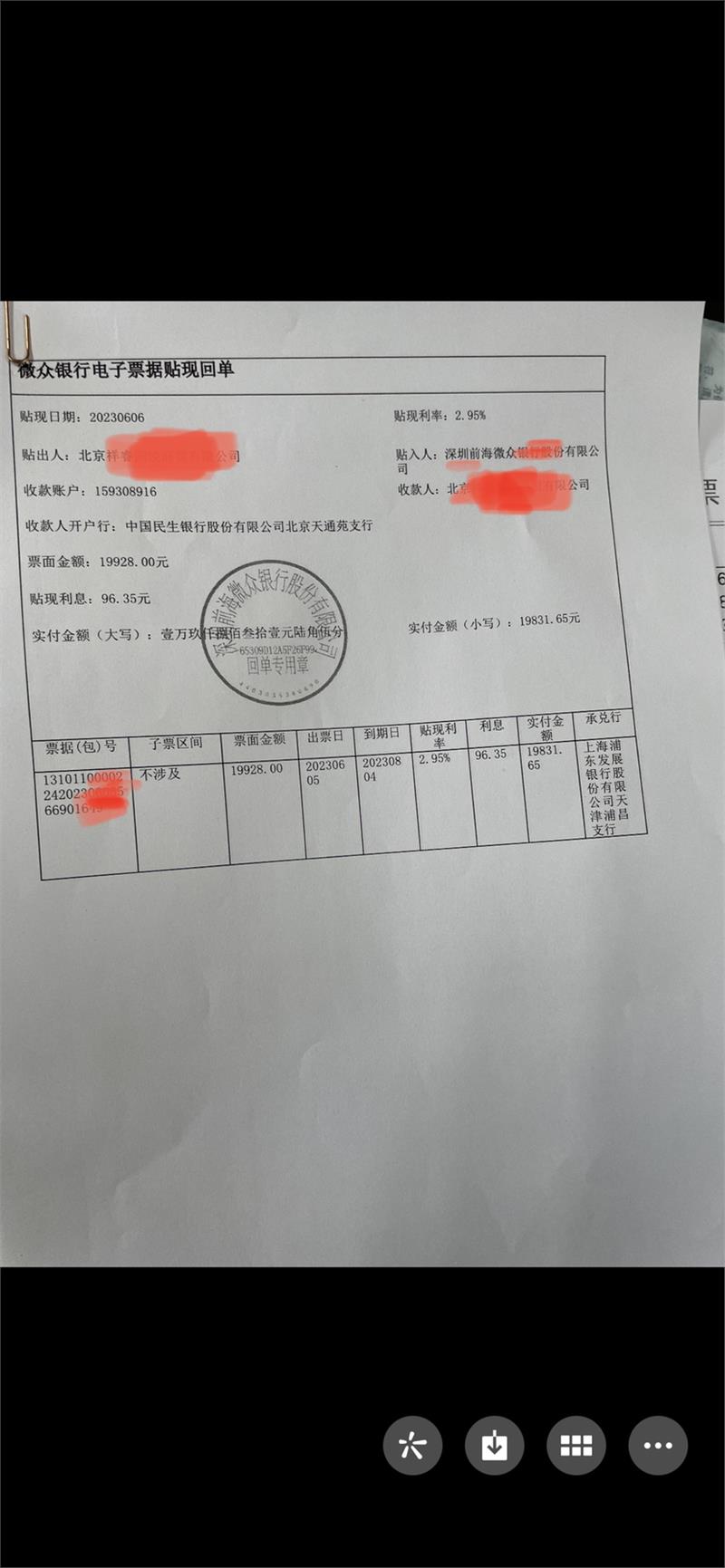 贴现是企业在应收票据到期之前,将票据背书后上交银行贴现,银行将票据的到期价值,扣除按照贴现利率计算的从贴现日至到期日的利息 (贴现折价)后的余款付与企业。