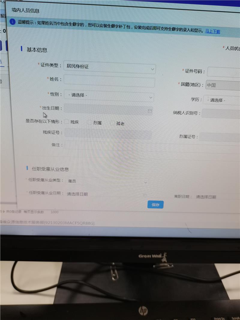 问请问下,个人所得税【人员信息采集】如果没有人发工资应该怎么填呢。是相当于子公司,人员工资由上级单位支付,所以子公司不涉及人员工资