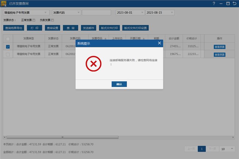 ③ 重新获取授权码,可以发送成功。(点击【系统设置】--【系统参数设置】--【参数设置】--【电子发票配置】核实邮箱配置信息)