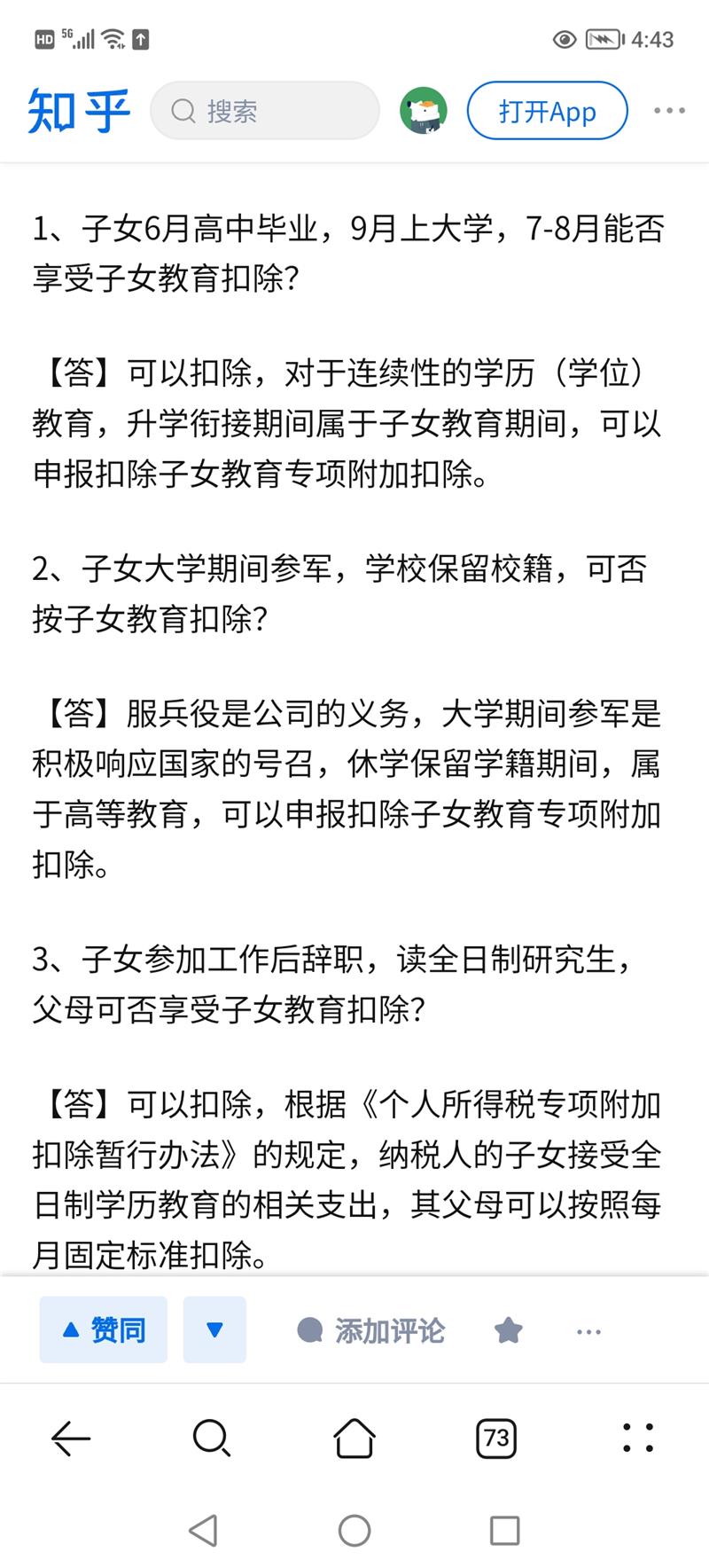 3、大学期间参军,学校保留学籍,可以按子女教育扣除服兵役是公民的义务,大学期间参军是积极响应国家的号召,休学保留学籍期间,属于高等教育阶段,可以申报扣除子女教育专项附加扣除。