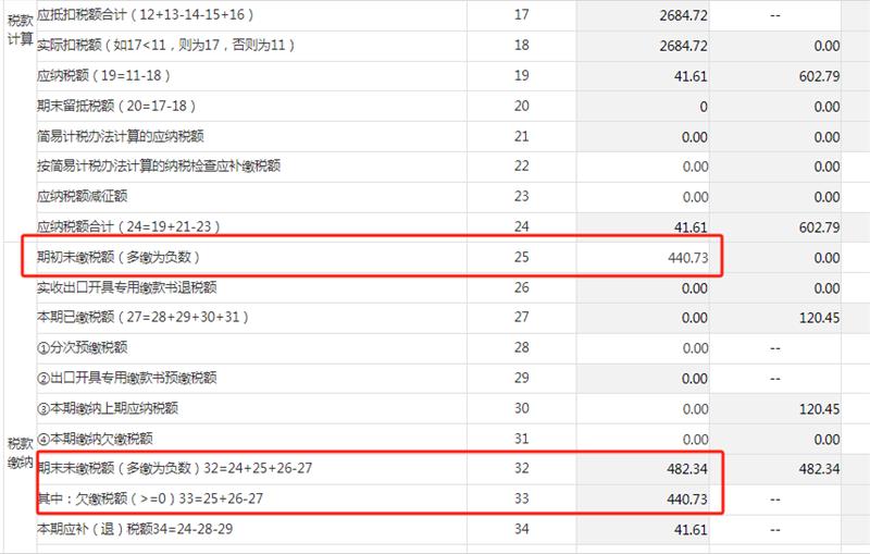 这个反映的是所属期内申报缴纳上期税款的情况,如果你们正常申报缴纳了,应该在30行本期缴纳上期税款里填写期初未交金额的。