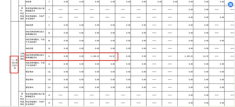 负数的话是红字发票大于正数发票,简易计税填写附表一就可以。