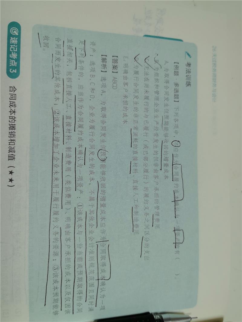 “为取得合同发生但预期能够收回的增量成本”,这部分成本应确认为合同取得成本,而不是合同履约成本 。合同取得成本是企业为取得合同发生的增量成本(不取得合同就不会发生的成本),预期能够收回的,应当作为合同取得成本确认为一项资产,所以A选项不符合要求。