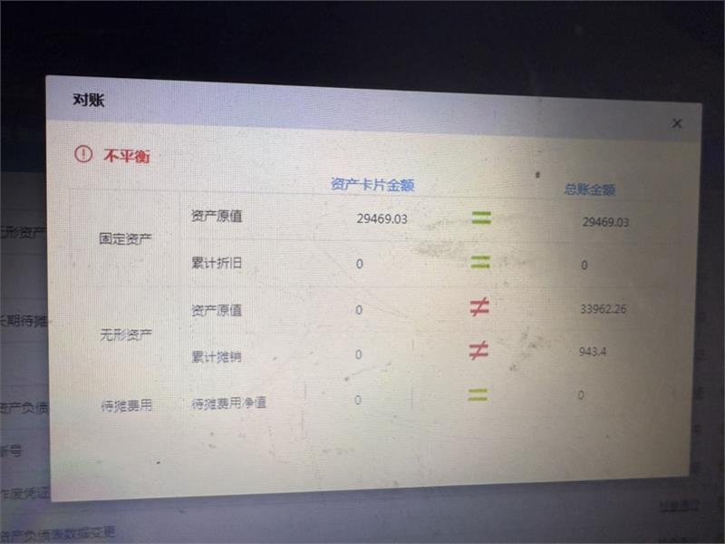 这个提示无形资产和总账对账不符 ,这个是因为你们没有启用固定资产模块的原因 如果没有启用固定资产模块 也会存在这种情况 这个不影响你们结账的
