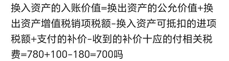 该题中非货币性资产交换不具有商业实质,应按换出资产账面价值为基础计算换入资产入账价值。