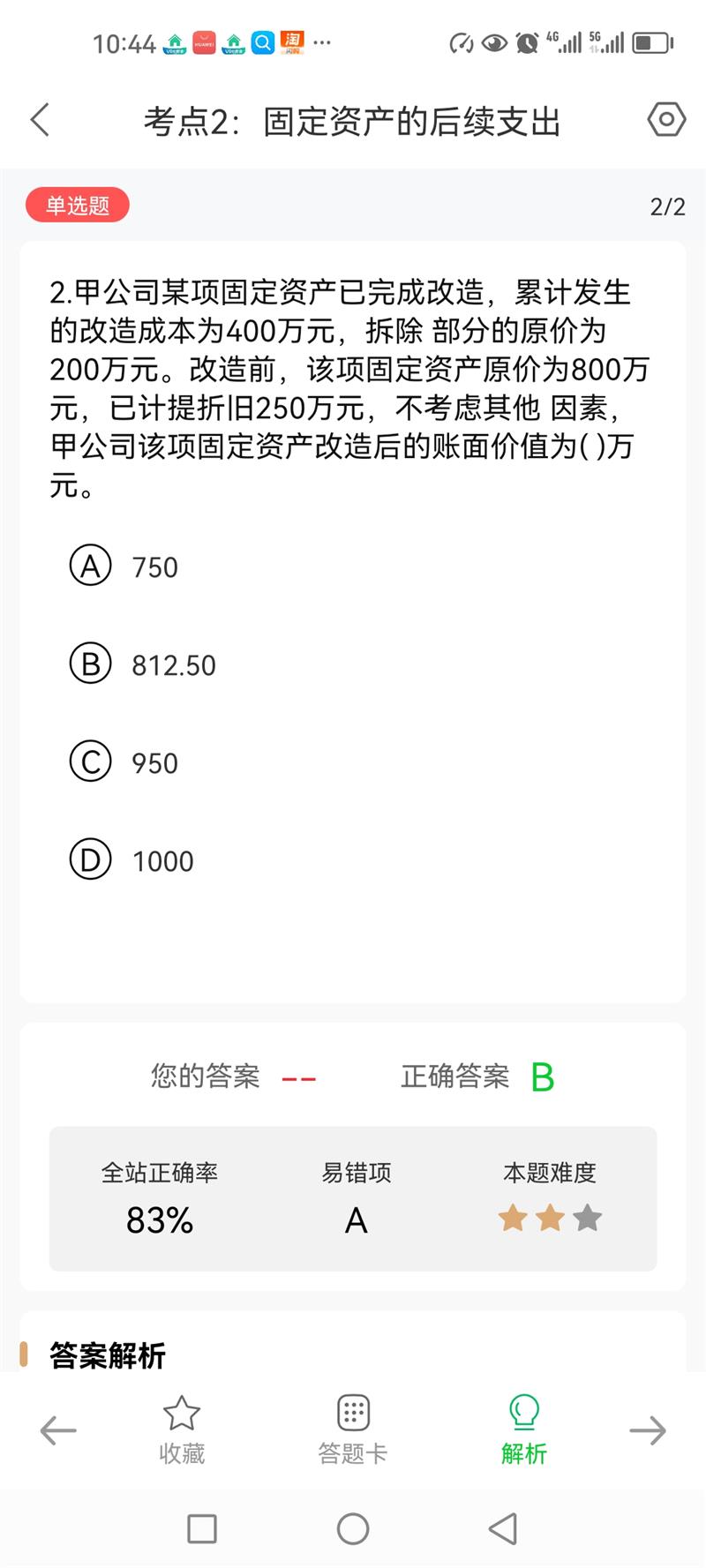 改造前账面价值550万元 - 拆除部分账面价值137.5万元 + 改造成本400万元 = 812.5万元
