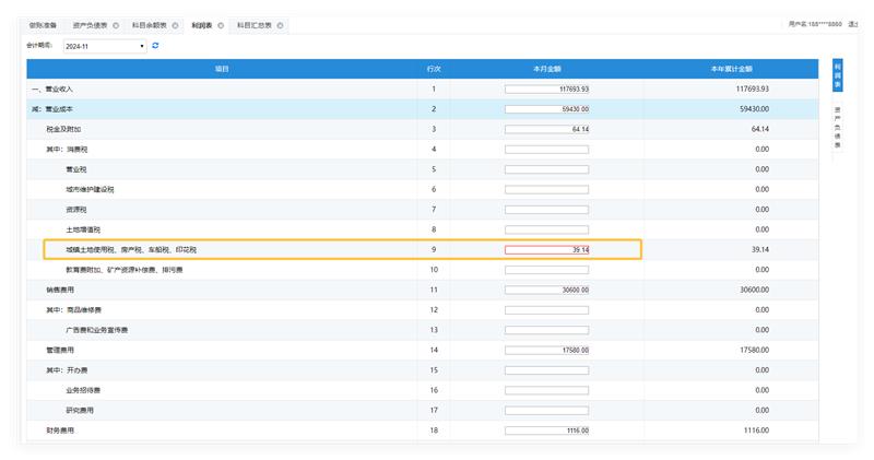 1. 利润表第九行39.14是印花税的实际发生额。科目余额表64.14包含期初余额或预提金额,利润表只反映当期费用。需核对当期实际计提或缴纳的印花税额是否为39.14。