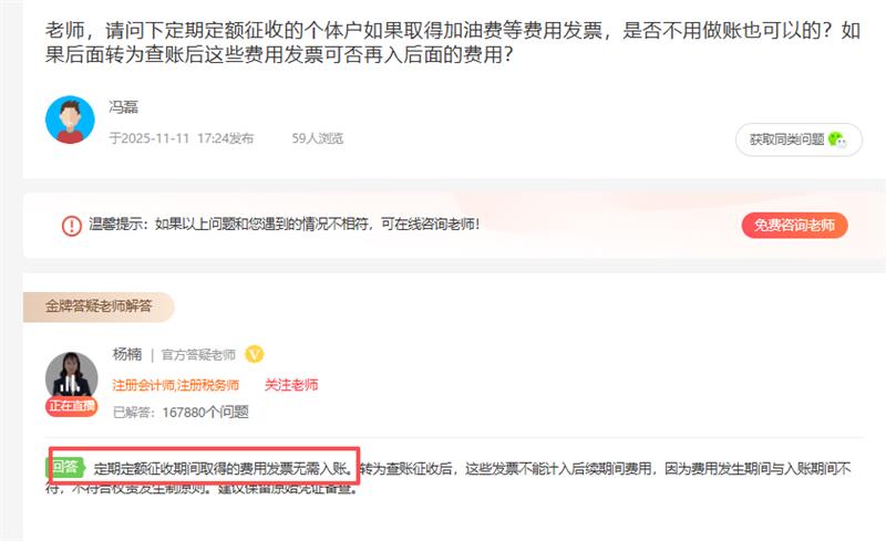 追问老师,有点蒙了,定期定额是要做账还是不用?成本的是要开回发票做账,其他费用不用吗?