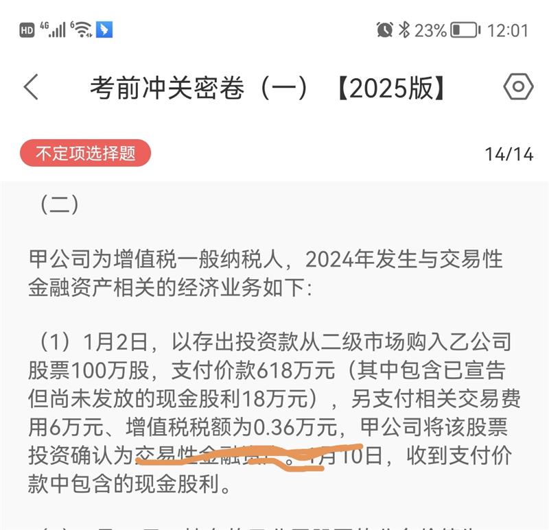 问(1)中另支付的交易费2.5也要记投资收益减少