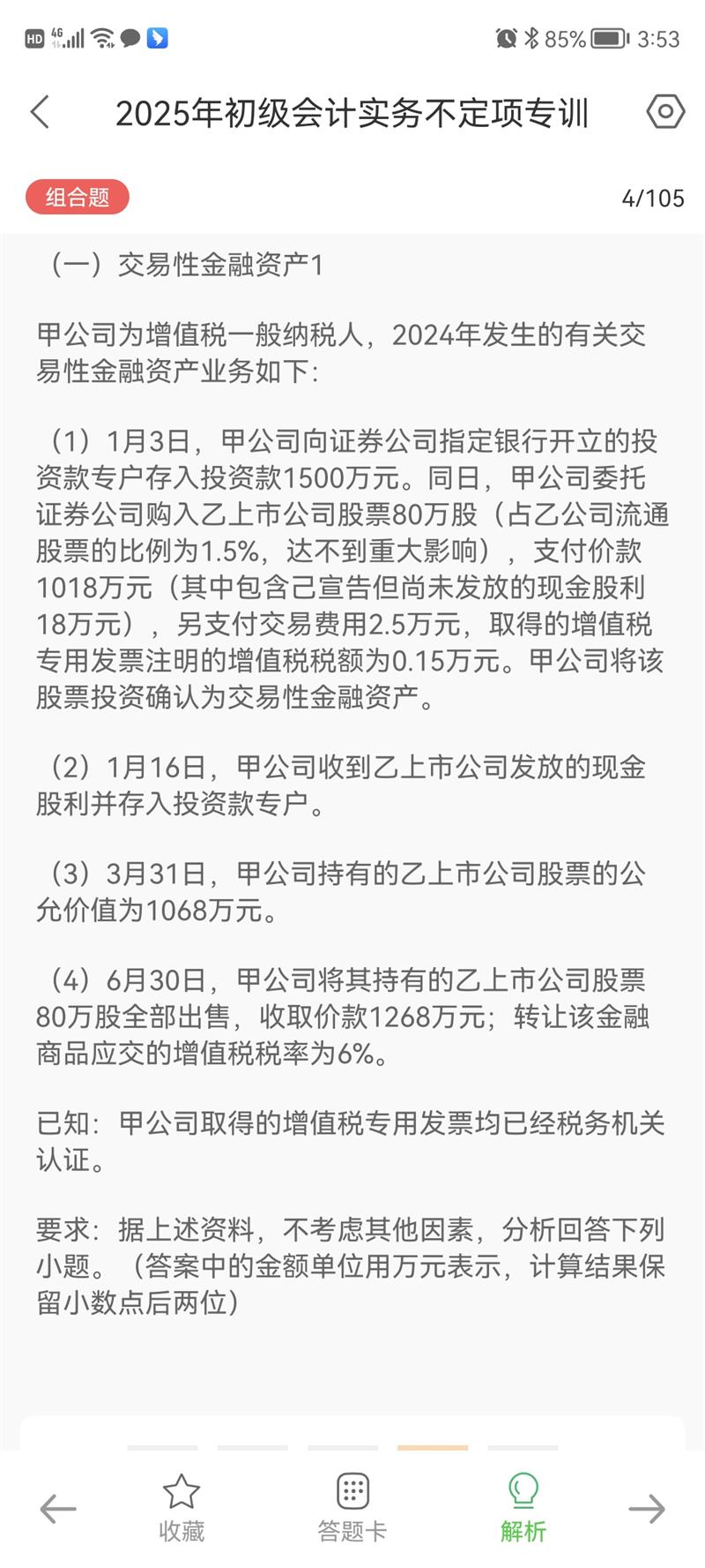问(1)中另支付的交易费2.5也要记投资收益减少