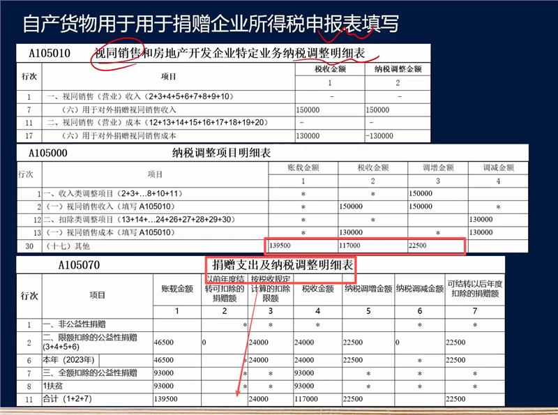 没有重复调增。A105000第30行“其他”调增的22500元,是会计上未确认收入但税法上视同销售应确认的销售收入。A105070调增的22500元,是这笔捐赠支出因超过税前扣除限额而不得扣除的部分。两者性质不同,前者调增收入,后者调增支出,在A105000表中分别体现,最终结果是正确的。