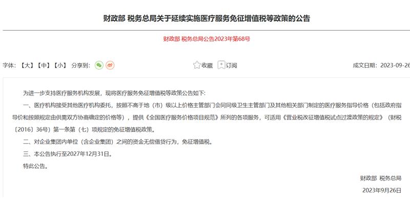 财政部税务总局公告2023年第68号文件的第二条是针对所有企业集团还是说只针对医疗服务