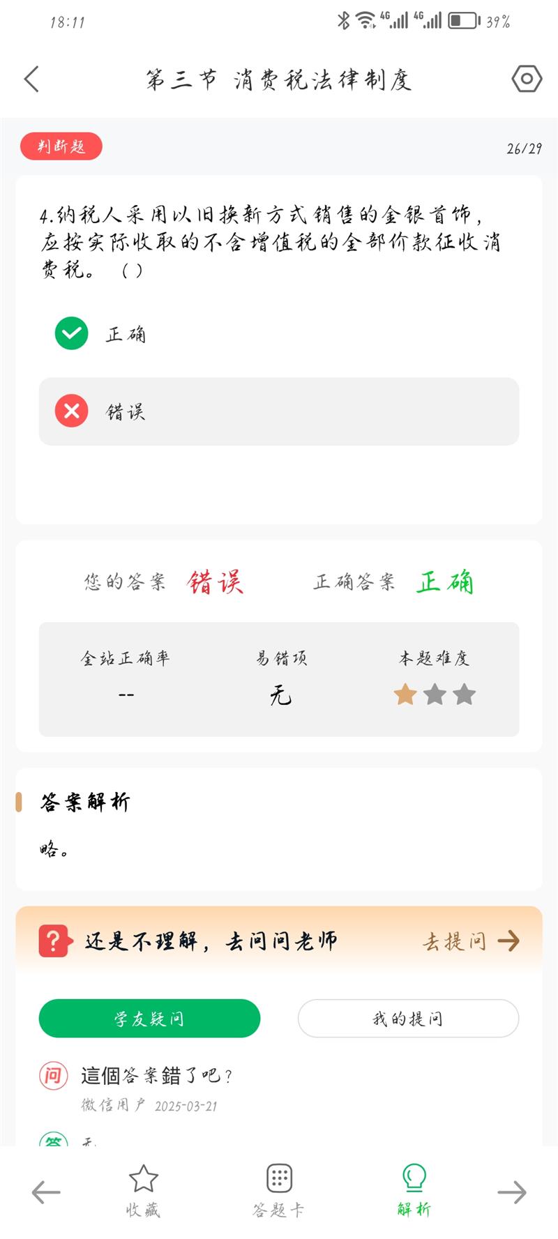 这题是正确的。 对于金银首饰的以旧换新业务,消费税的计税依据确实是**实际收取的不含增值税的全部价款**,而不是新旧首饰的差价。 这与一般货物以旧换新(按新货物同期销售价格计税)的规定不同,是金银首饰消费税的特殊规定。