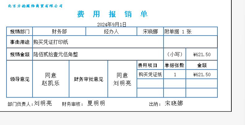 报销单签名顺序通常为:经办人 → 部门负责人 → 财务负责人 → 公司领导(根据金额权限)。本题中,虽然制度规定1000元以内由主管部门经理和财务部门经理审批,但题目给出的报销单上已明确设置了“总经理审批”栏,且金额为960元。这通常是因为题目模拟的场景中,该公司对此类费用(如本题的“业务招待费”)有特殊规定,或该笔费用需要更高层级的事后知悉/备案。因此,需遵循题目给定的单据格式完成所有签名栏的审批。
