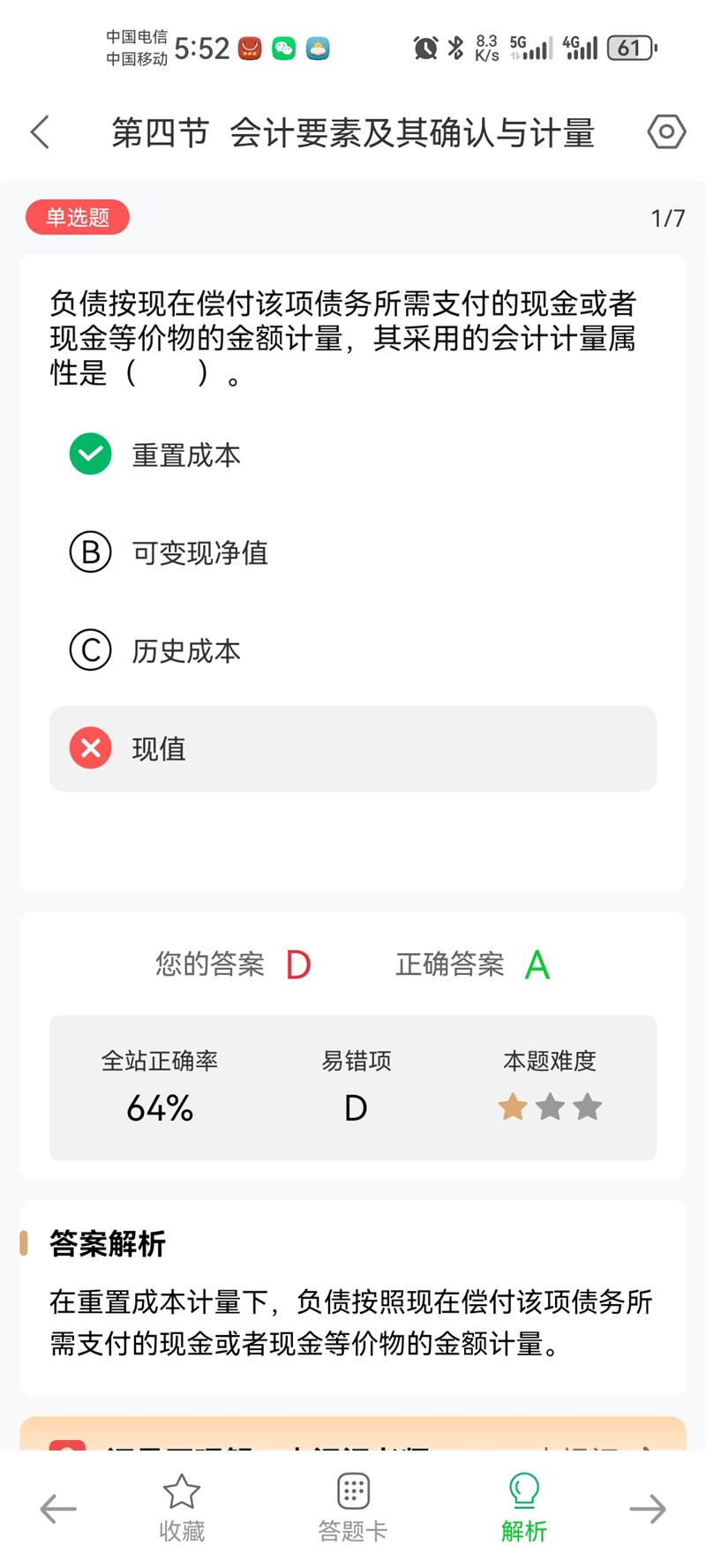 负债的计量属性中,重置成本的定义正是“按照现在偿付该项债务所需支付的现金或者现金等价物的金额”。这与题干描述完全一致。历史成本是负债发生时的金额,可变现净值通常用于资产减值,现值则是考虑货币时间价值的未来现金流折现。因此,选项A正确。