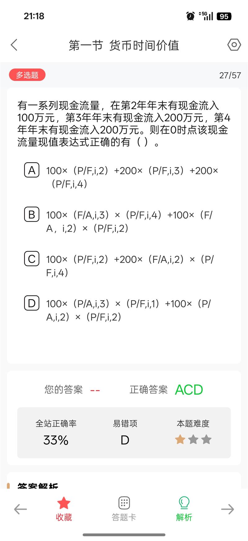 D是把第3年末和第4年某流入的200拆成2个100,一个100与第2年末的100组成3期年金,另一个100单独组成2期年金