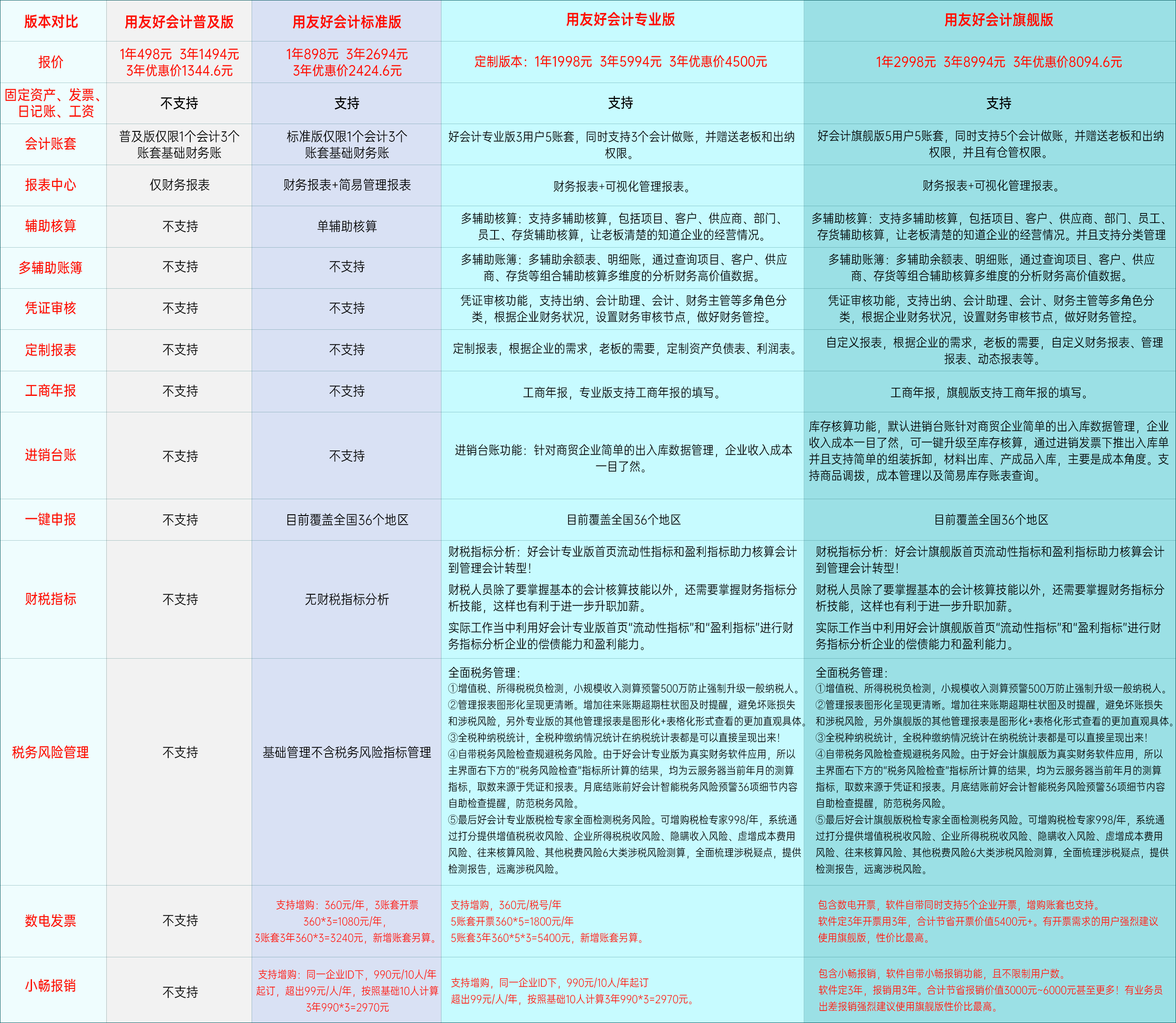 同时包含多辅助核算、一键报税、发票管理、资金管理、工资管理、