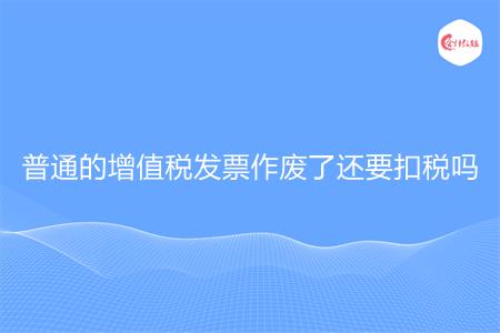 会计小伙伴们记住了,在做账的时候如果遇到作废了的普通的增值税发票,记住了,是不需要扣税的哦。想要详细了解,普通的增值税发票作废了还要扣税吗,相关知识的会计小伙伴,你们福利来喽,下文就是会计教练小编整理的相关文章,快去看吧。