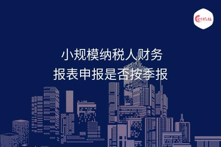 小规模纳税人财务报表通常是按季度申报(因为小规模纳税人相关税款也通常是按季度申报)的。小规模纳税人财务报表是按月还是按季度申报,需要按所在地主管税务机关要求,因为财务报表报送期限是当地税局管理,不是全国统一规定的。