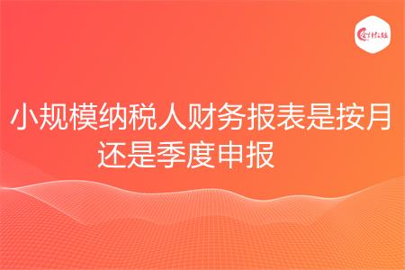小规模纳税人财务报表通常是按季度申报(因为小规模纳税人相关税款也通常是按季度申报)的。小规模纳税人财务报表是按月还是按季度申报,需要按所在地主管税务机关要求,因为财务报表报送期限是当地税局管理,不是全国统一规定的。