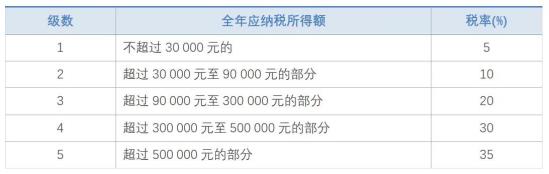 五、非居民取得工资薪金、劳务报酬、稿酬、特许权使用费所得,适用税率表