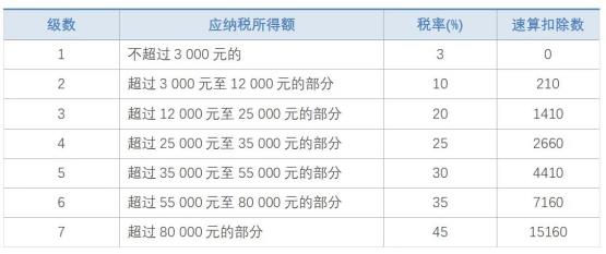 三、居民个人工资、薪金所得扣除预缴适用税率表该表与综合所得税率表相同