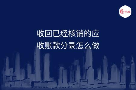 1、转回已经核销的应收账款,做与核销时相反的分录.目的一是冲销已使用的坏账准备,二是反映在对方的"应收账款"账户中,可查实对方的信用.