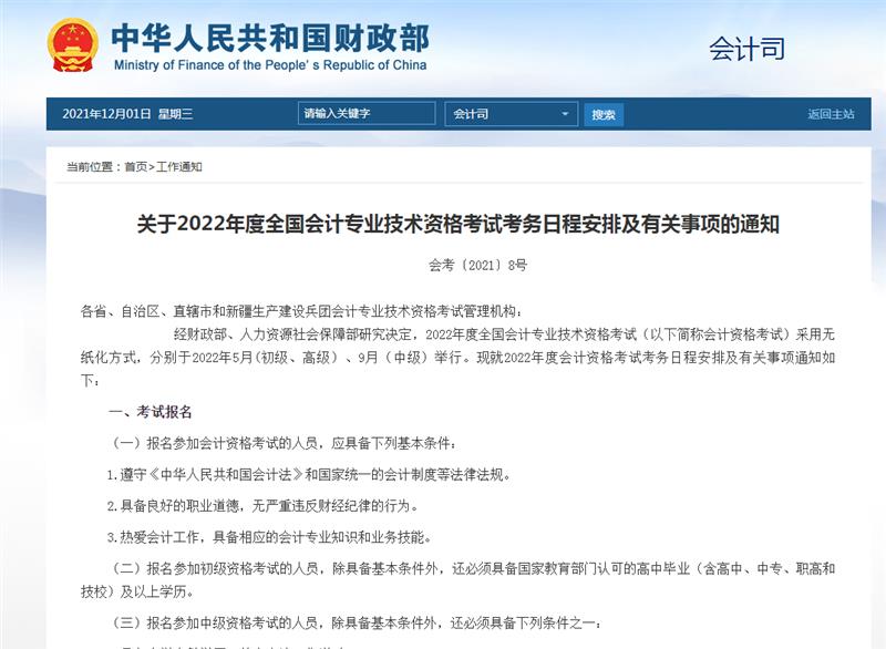 大家期盼已久的初级会计考试报名时间出来了!今天由财政部会计司发布的全国会计资格考试的事项通知,大家一起来看看吧,2022年初级会计考试报名时间以及考试时间已经出来了,可以根据这个时间来进行备考了哦,至于详细的信息大家可以一起来看一下下面的这篇文章哦。