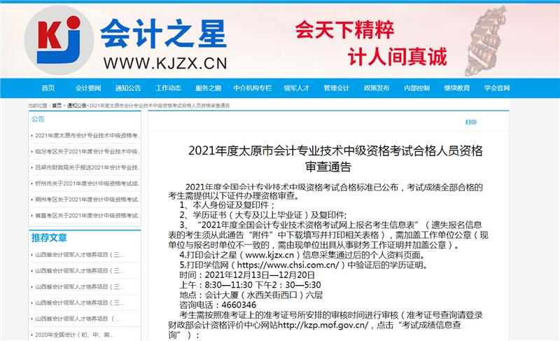 2021年中级会计合格的标准已经公布了,合格的会计朋友们应该等资格审查的消息等的很着急了吧,今天审查通告就出来来,听小编给大家讲一讲2021年太原市中级会计考试合格人员资格审查安排,所需要要的材料也就是身份证,学历证书,学历证明,考生信息表等,具体的操作方法请看下文。