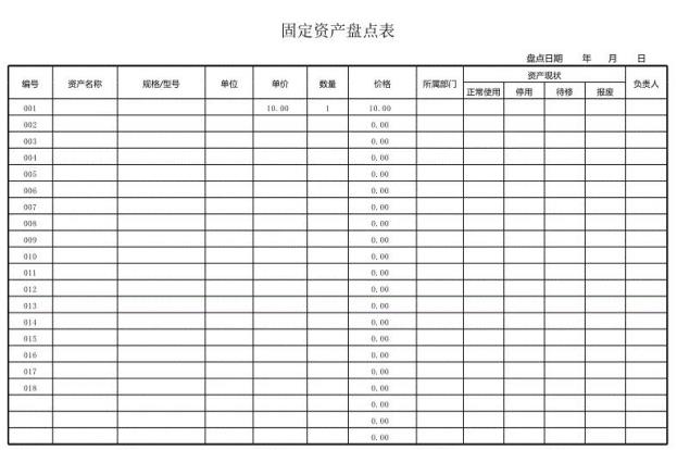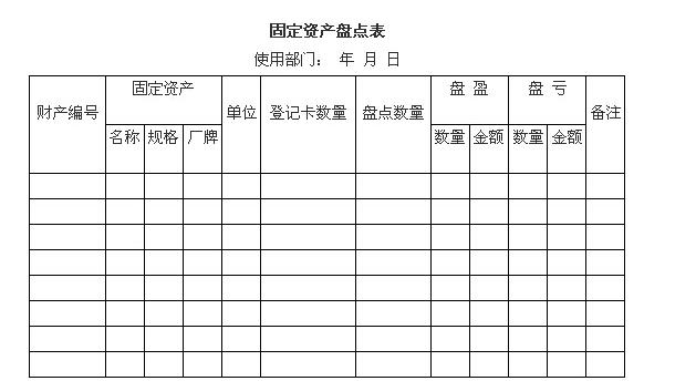 固定资产盘点表没有统一规格的要求,盘点表 一般情况下由:编号,固定资产名称、规格、厂牌,单位,登记卡数量,盘点数量,盘点人、复合人、审批人组成。《固定资产盘点表》的主要用处是作为备查辅助材料实用,既不能作为会计凭证使用,也不能作为最终报表使用。下面是常用的固定资产盘点表格式