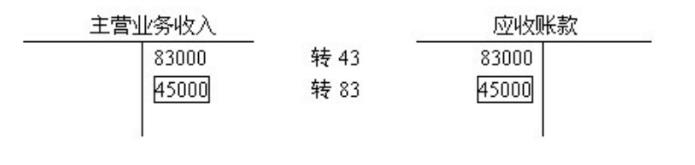 转43号:借:应收账款—甲企业 83000 贷:主营业务收入 83000
